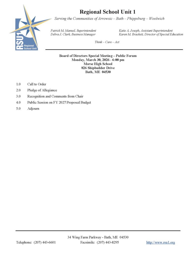 The Annual Budget Meeting is on May 26th time TBD at Morse High School.
